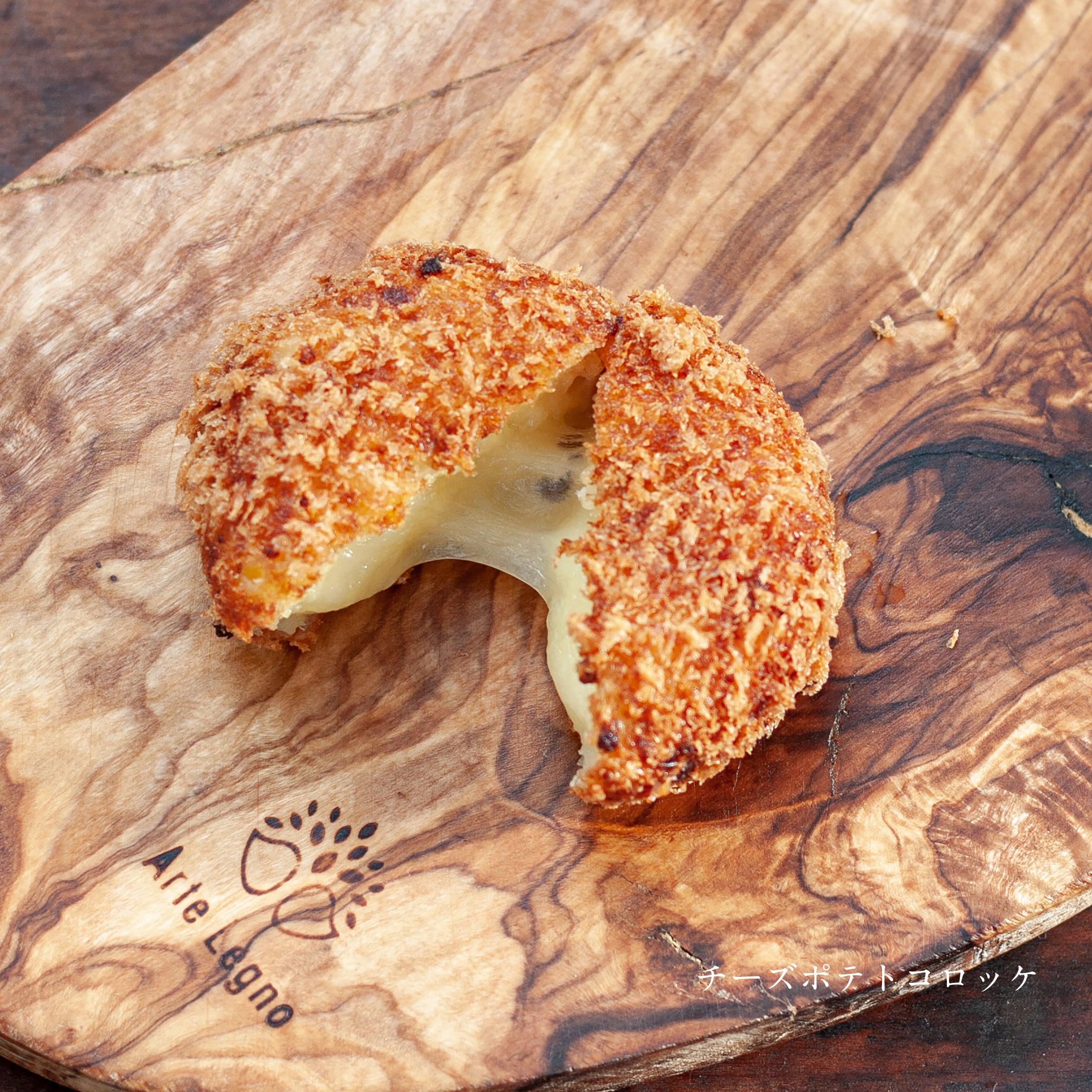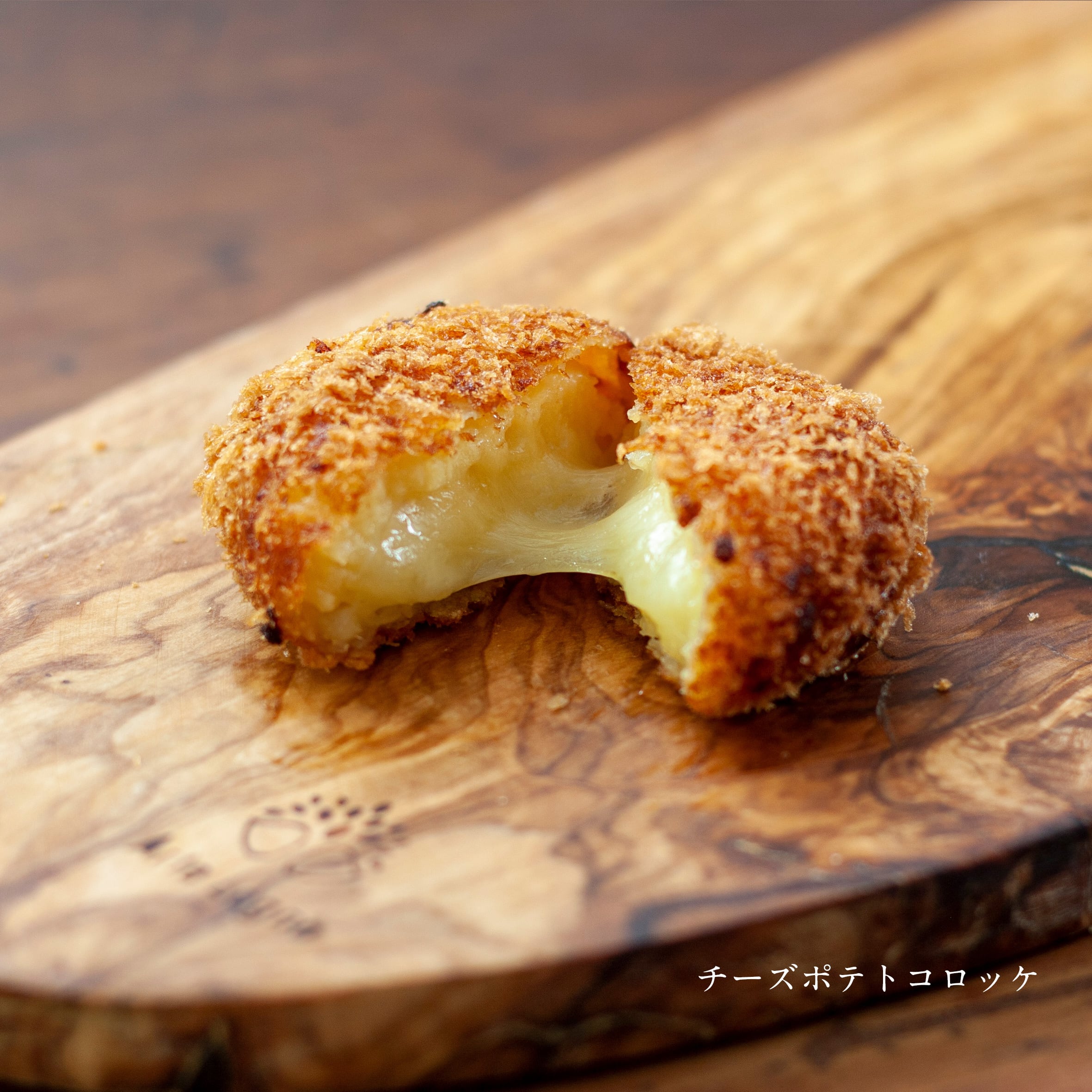 じゃがいも生地に風味豊かなプロセスチーズとエダムチーズを練り込み、さらに中心部には加熱でとろけるステッペンチーズを大胆に包み込みました。3種のチーズの濃厚なハーモニーが楽しめる、チーズ好きのためのごちそうコロッケです。